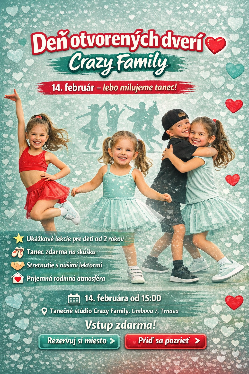 Pozývame vás na Deň otvorených dverí do tanečného štúdia Crazy Family, kde si môžete na vlastnej koži zažiť, prečo sa u nás deti do tanca zamilujú.